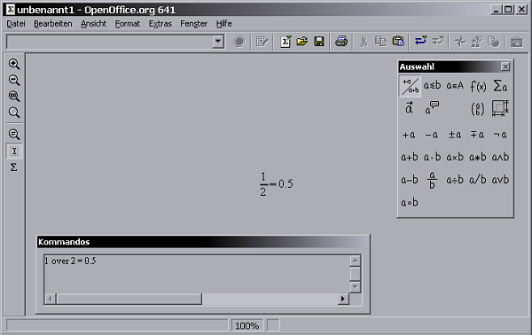 Das Menü enthält alle wichtigen Funktionen und Einstellungsoptionen. Für die Bedienung des Formel-Programmes ist es aber nicht so wichtig, die Kommandoeingabe und das Befehlsauswahlfeld sind weitaus wichtiger.